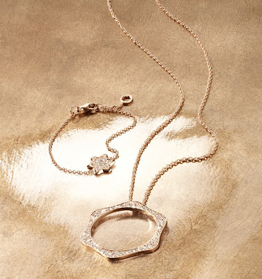 The designs in pure white or pink gold are delicate and thin with many interpretations of the star shape. Diamond pavé is used extensively and in different ways in this collection. For example, for a pendant, diamonds of different sizes are used, which give a cobblestone appearance. On the reverse side of the piece, the impressions made by the diamond pavé have its own intricate pattern. “I like to see the jewelry from the back,” she says. “It’s where you see if there is a real savoir faire. The treatment on the back has to be as nice as the front. It is a really key thing in each piece of jewelry.”